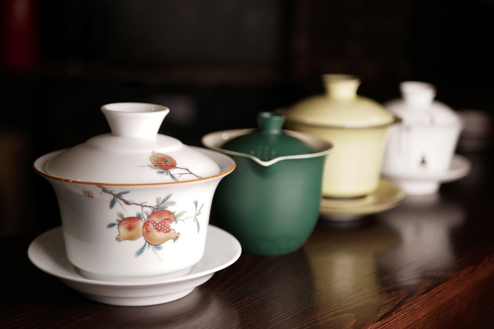 Так как листовой чай можно было заваривать многократно, размер чаши уменьшился, добавились крышка – чтобы чай не остывал и листья не попадали в рот вместе с настоем, и блюдце – оно помогало удобно держаться за чашку и не пачкать стол, когда гайвань стояла на столе.