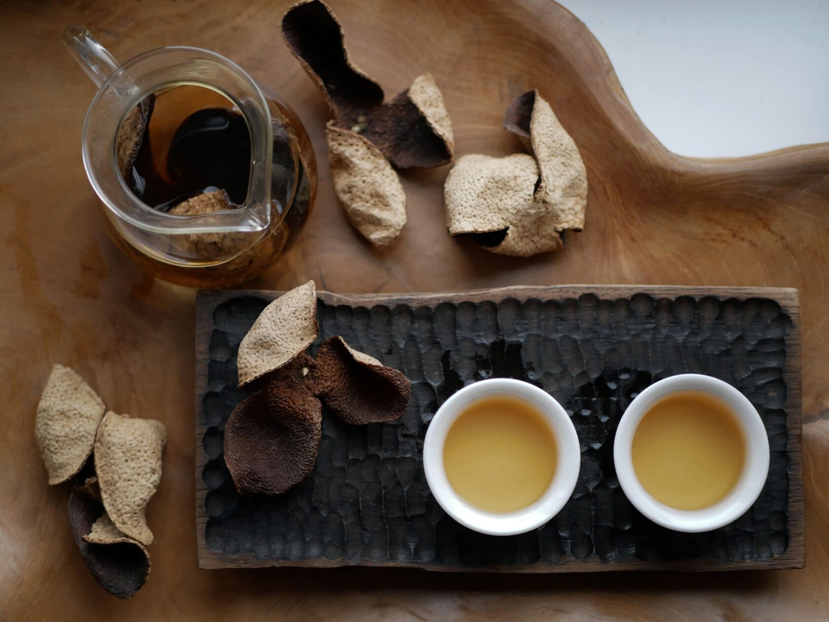 Для начала стоит обратить внимание на вкусоароматические качества выдержанной кожуры. Это сложный, многогранный аромат с большим количеством дескрипторов: первые годы аромат насыщенный, цитрусово-фруктовый, в дальнейшем он углубляется, начинают добавляться «третичные» тона выдержки– кожа, сургуч, гуашь, старое дерево, лекарственных трав и потухших благовоний. При этом во вкусе остаются благородные цитрусовые тона, оттеняемые перечной остринкой и долгим горько-сладким послевкусием, остающимся во рту ещё надолго.