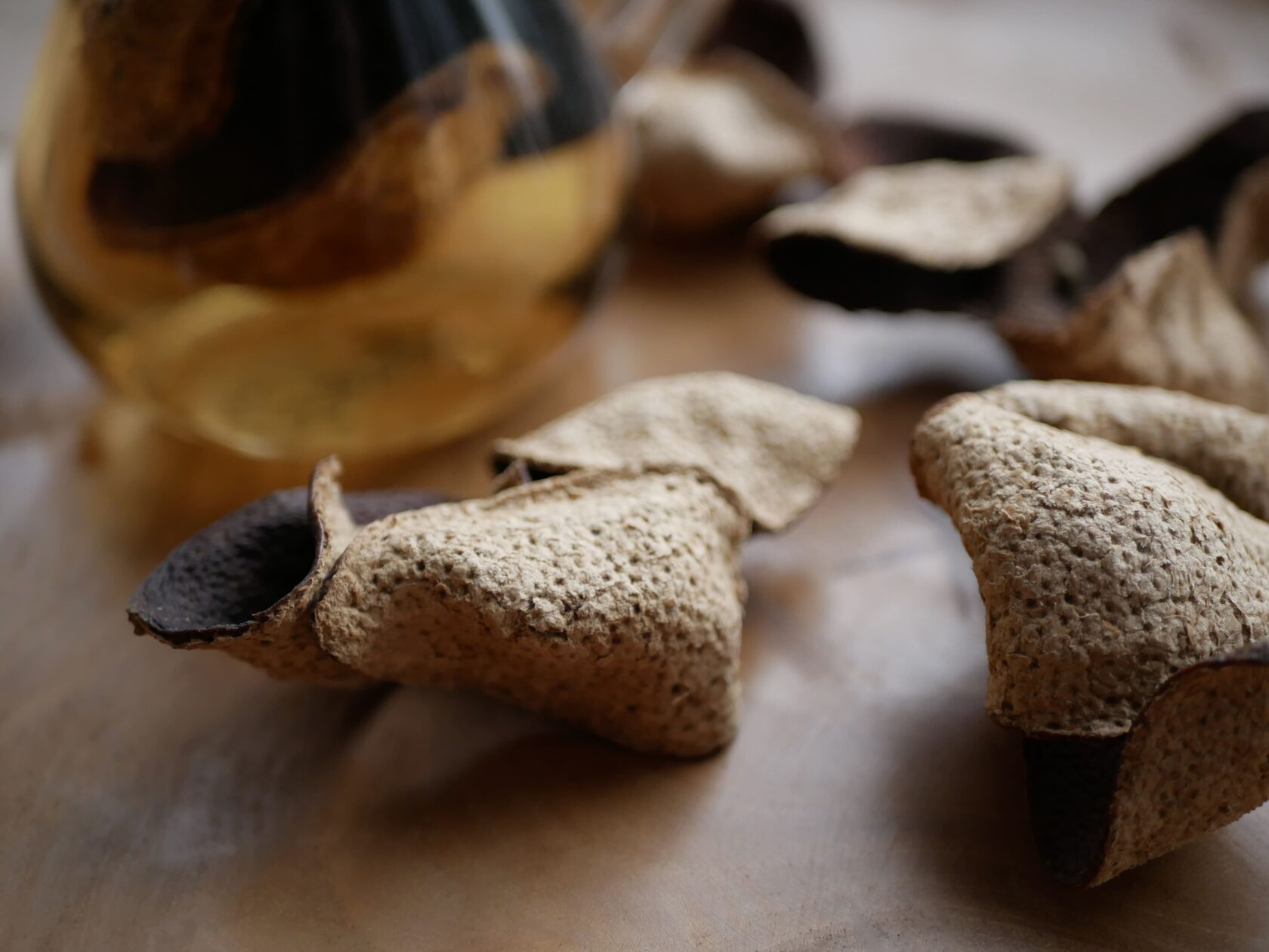 Для того, чтобы сделать выдержанную чэнь пи, не получится просто съесть мандарин и высушить от него корку. Во-первых, мандарин нужен особенный: он называется Чачжигань 茶枝柑, или «мандарины чайных ветвей». Это общее название всех мандаринов, выращиваемых в Синьхуэй. И да, Синьхуэй Чэнь Пи – защищенный географический продукт, поэтому и сорта деревьев, и регион сбора должен соответствовать, чтобы продукт мог так называться. Во-вторых, важен возраст мандаринового дерева: с молодых деревьев кожура менее насыщенная и ароматная, а особо ценятся плоды с деревьев старше десяти лет.