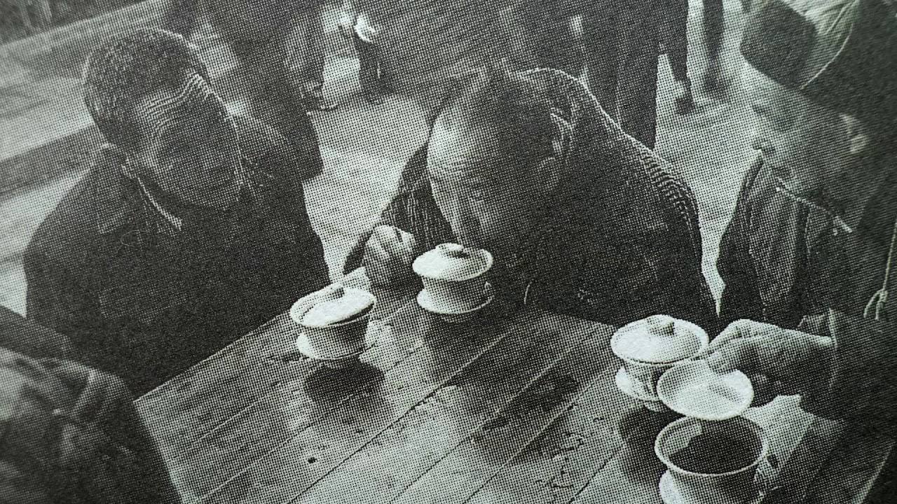 Подобрали для вас несколько архивных фотографий, показывающий чайный быт китайцев в моменте - в кафе, на улицах, за общими столами.